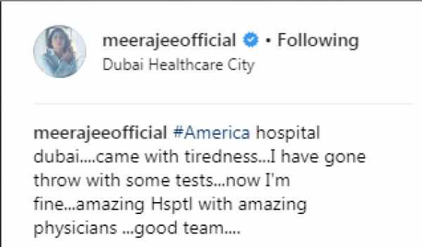 دبئی (سچ نیوز) پاکستان کی معروف اداکارہ میرا جی صحت کی خرابی کے باعث دبئی کے ہسپتال میں داخل ہوگئیں۔اداکارہ میرا کی جانب سے انسٹاگرام پر ہسپتال کے بستر کی تصویر شیئر کی گئی ہے۔ میرا جی نے بتایا کہ وہ دبئی کے امریکن ہسپتال میں داخل ہیں جہاں ان کے کچھ ٹیسٹ کیے گئے لیکن اب وہ صحتمند ہیں۔ انہیں تھکاوٹ اور طبیعت بوجھل ہونے کی وجہ سے ہسپتال لایا گیا تھا۔ اداکارہ نے ہسپتال میں موجود سہولیات اور ڈاکٹرز کی بھی تعریف کی۔