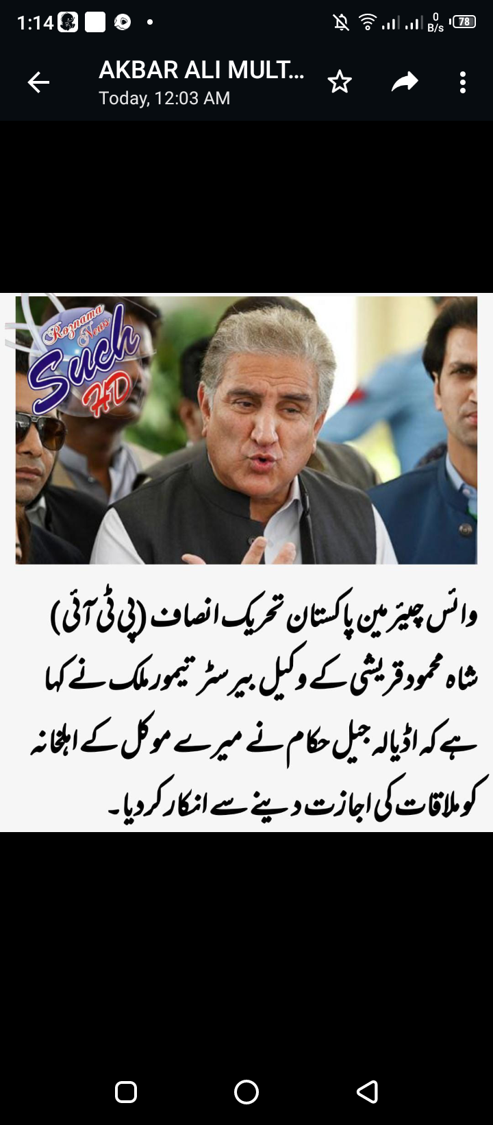 بیرسٹر تیمور ملک نے مزید کہا کہ اطلاعات ہیں کہ شاہ محمود قریشی کو آج اٹک جیل منتقل کیا جا رہا ہے۔